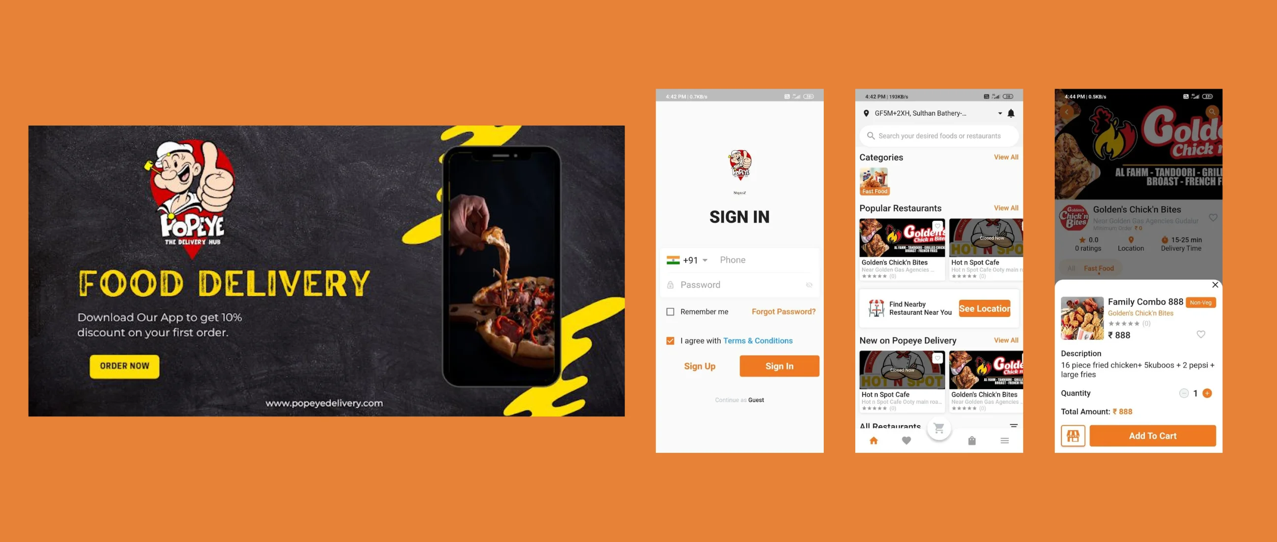 Food Delivery App For Popeye Delivery - Ooty, India.