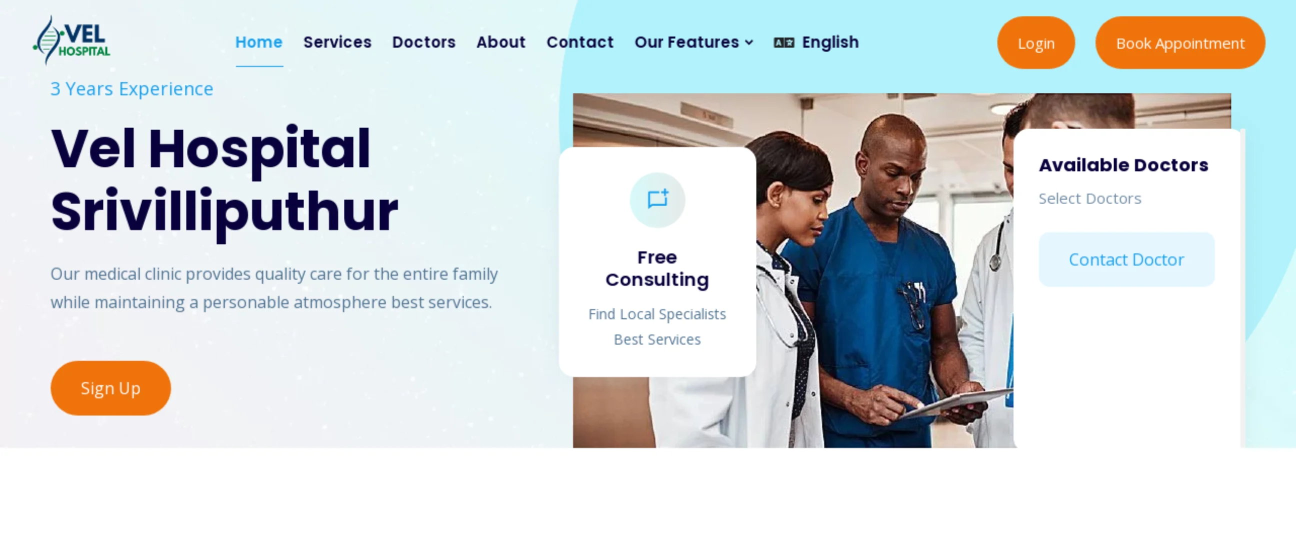Hospital Management App for Vels Hospital Srivilliputhur, Tamil Nadu, India.